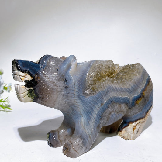22cm Large Unique Druzy Volcanic Agate Bear Carving Crystal Healing Bulk Wholesale