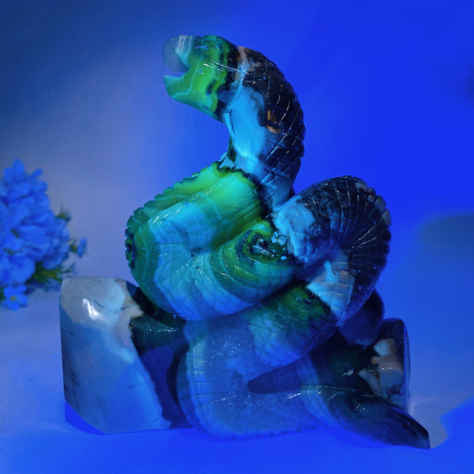 16cm Large Uniqu UV Reactive Volcanic Agate Snake Carving Crystal Healing Bulk Wholesale