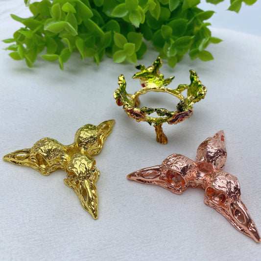 2.0" Triple Raven Skull Rose Flower Metal Stand