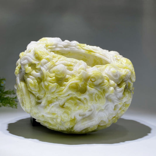 20cm Serpentine Treasure Bowl with Dragon Decor Carving Crystal Healing Bulk Wholesale