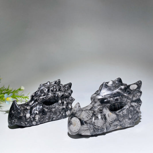 4.0"-4.6" Fossil Jasper Dragon Head Carving Crystal Healing Bulk Wholesale