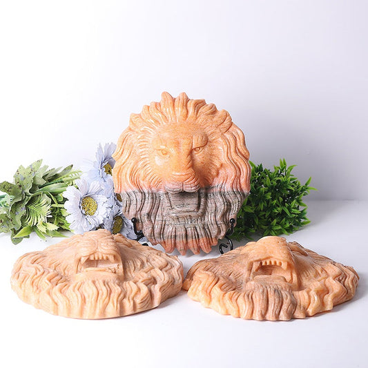 9" Unique Sun Stone Lion Head Crystal Carvings Free Form