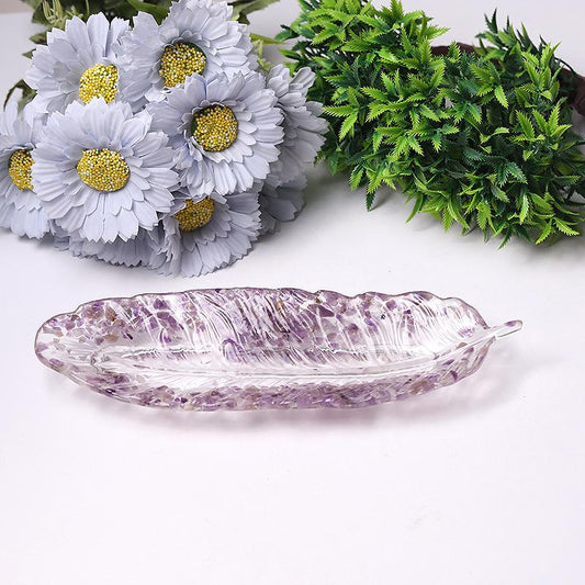 9.5" Feather Shape Plate Crystal Carvings Wholesale Crystals USA