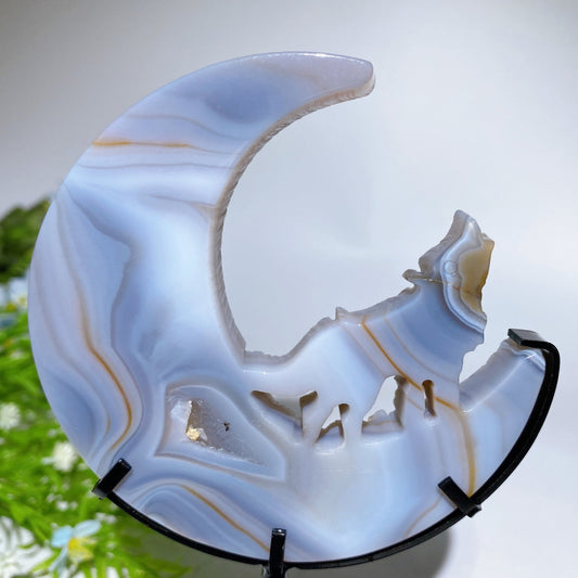 Druzy Agate Wolf on Moon Carving with Stand Crystal Healing Bulk Wholesale