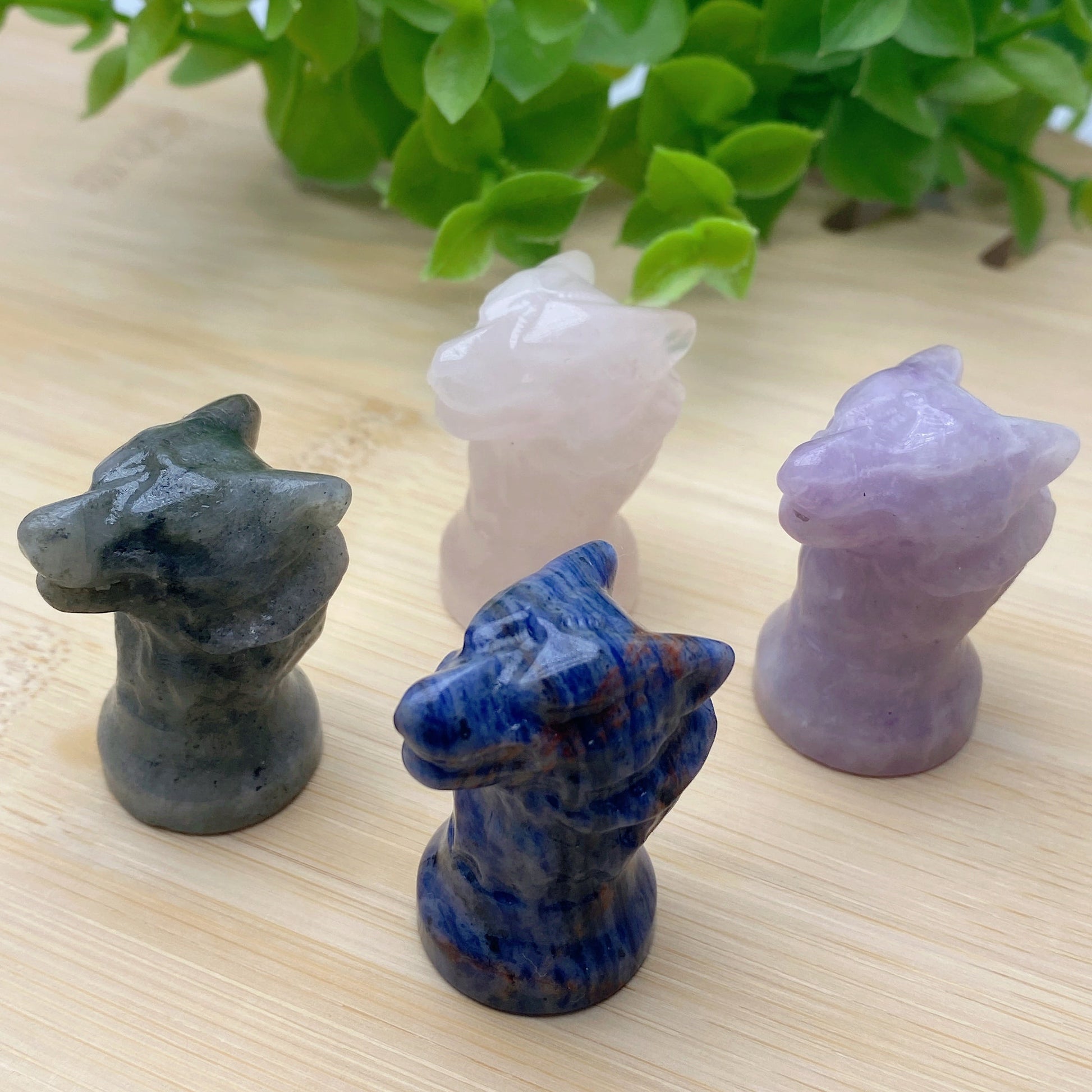 1.4" Mixed Crystal Wolf Head Carvings Bulk Wholesale