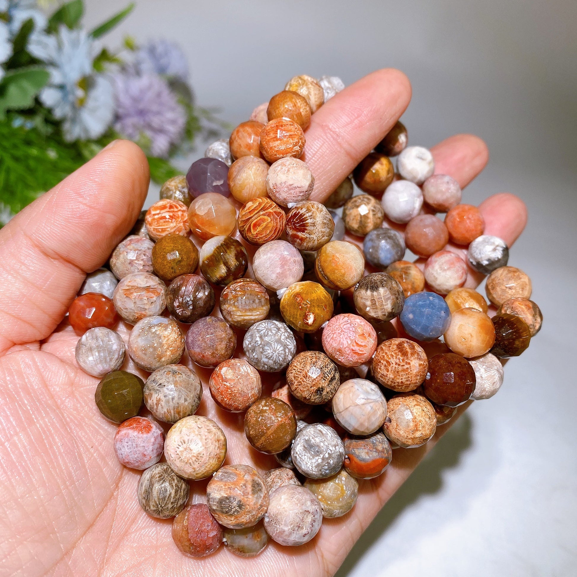 10-11.5mm Faceted Coral Agate Bracelet Crystal Healing Bulk Wholesale