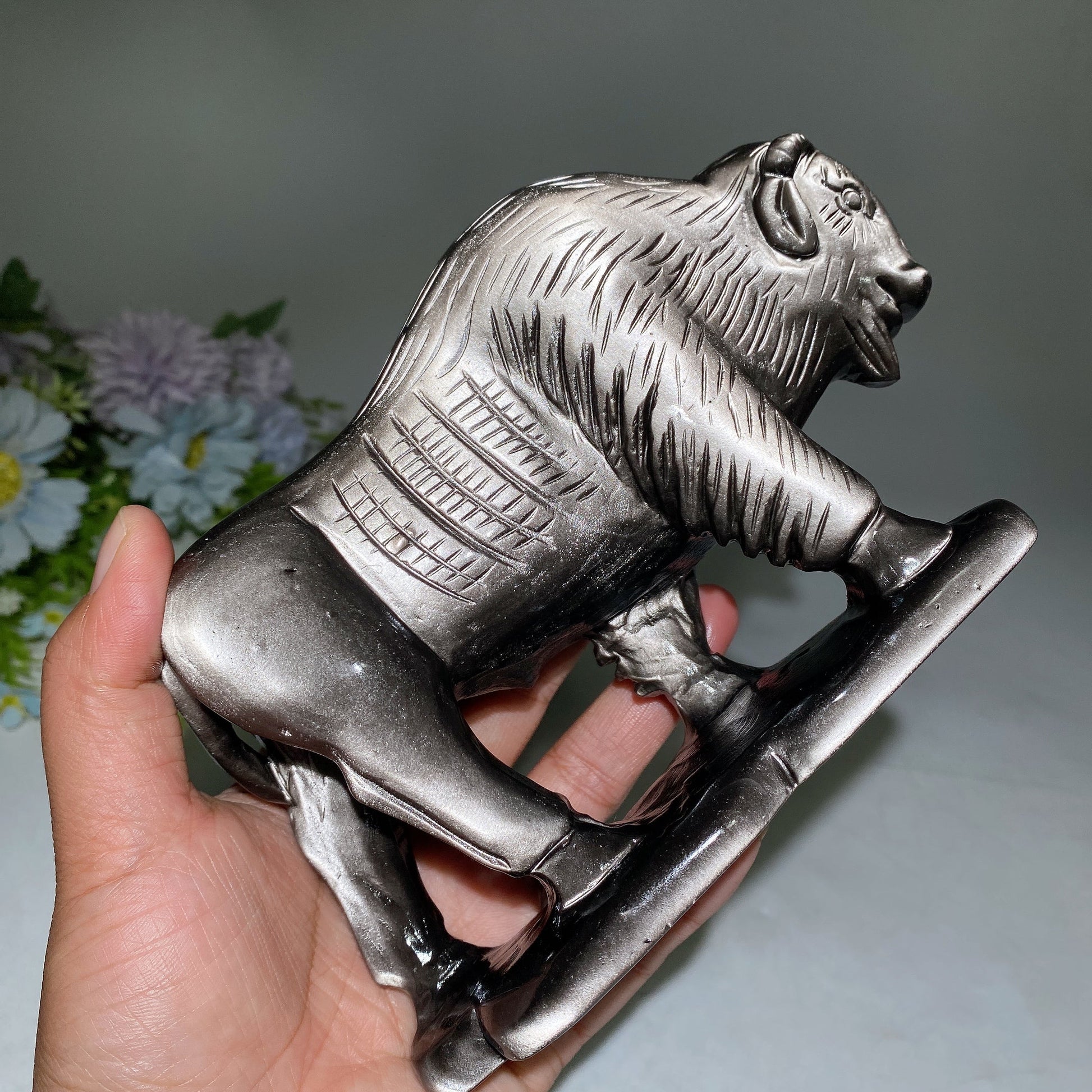 18cm Silver Obsidian Yak Carving Crystal Healing Bulk Wholesale