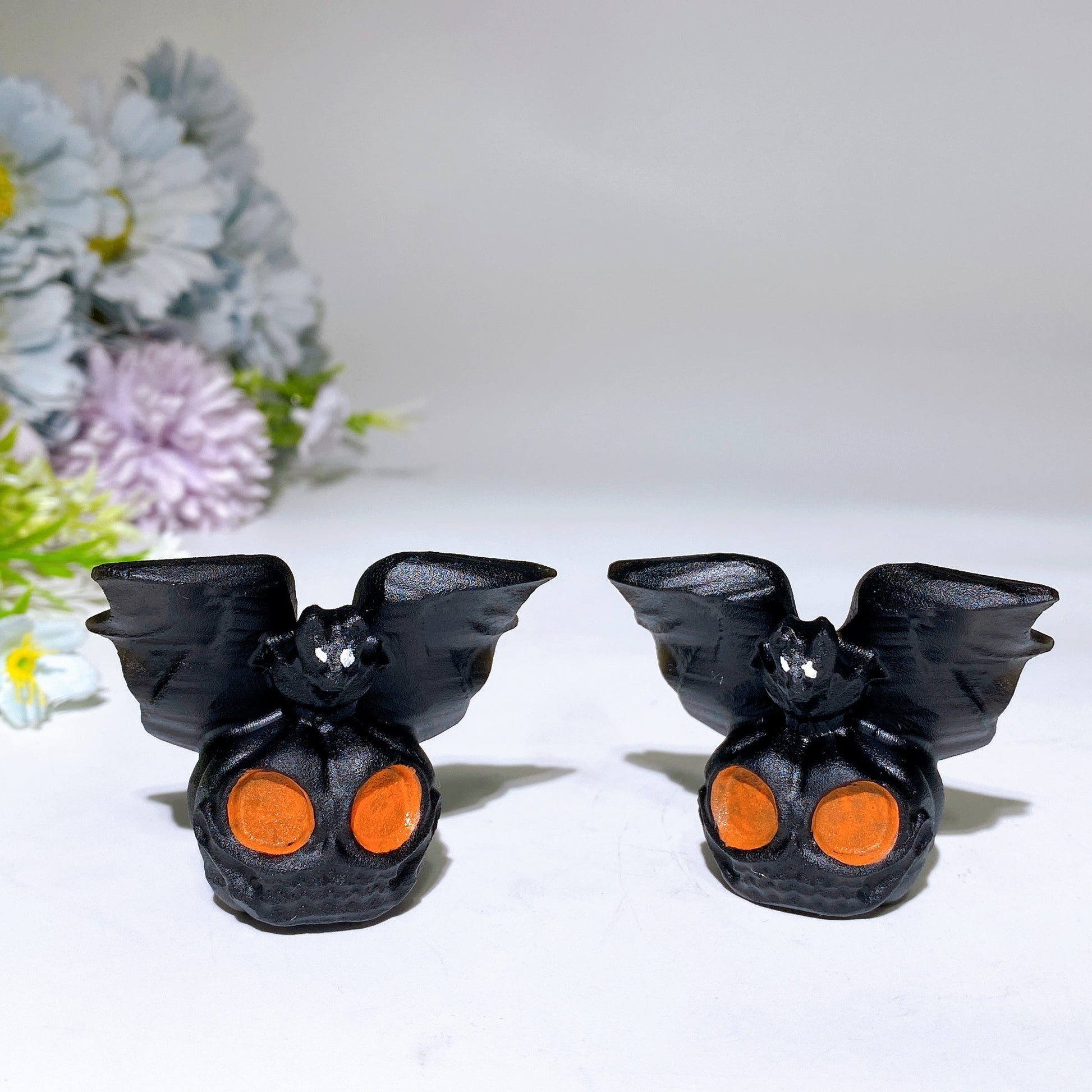 2.1" Black Obsidian Pumpkin Ghost with Bat Carving for Halloween Crystal Healing Bulk Wholesale