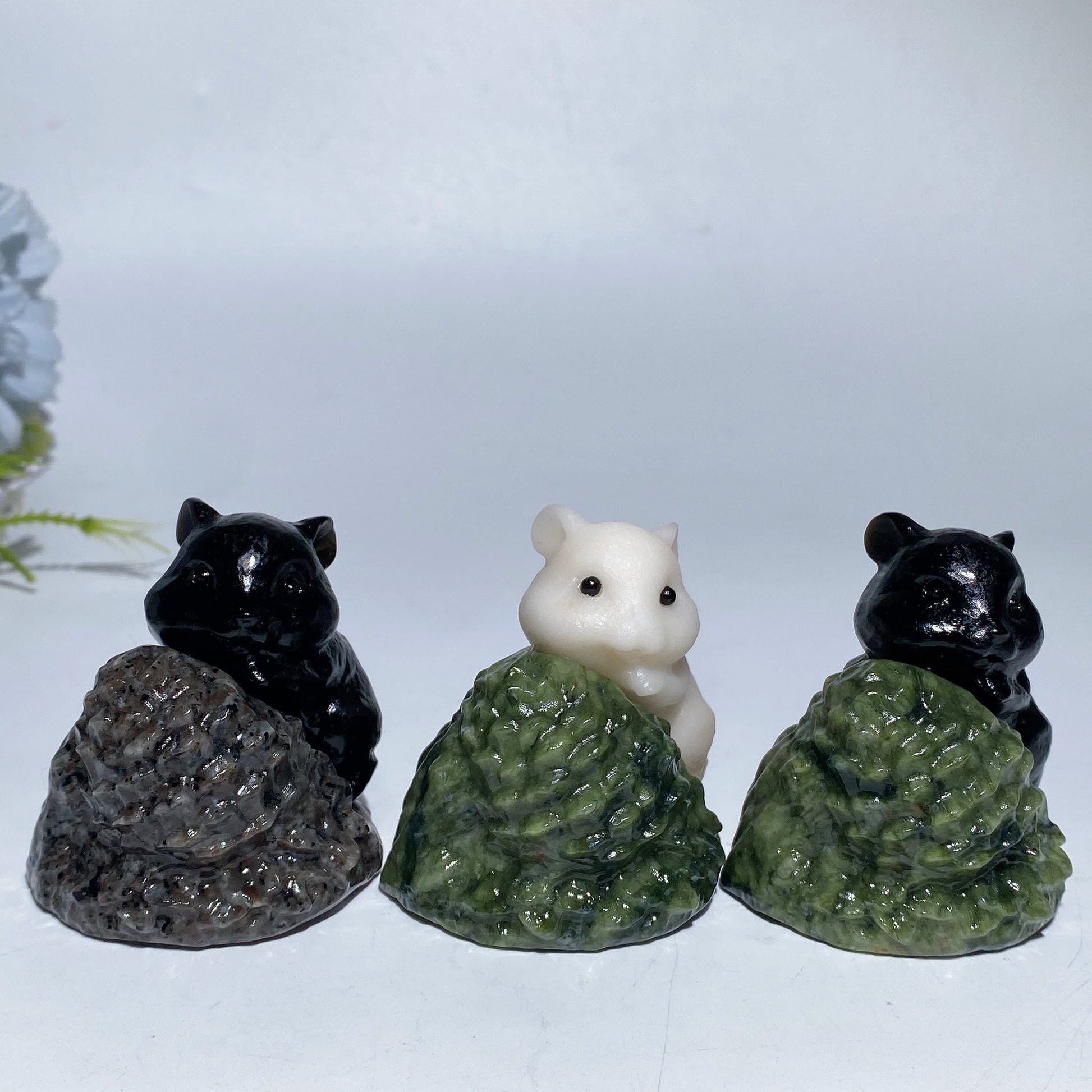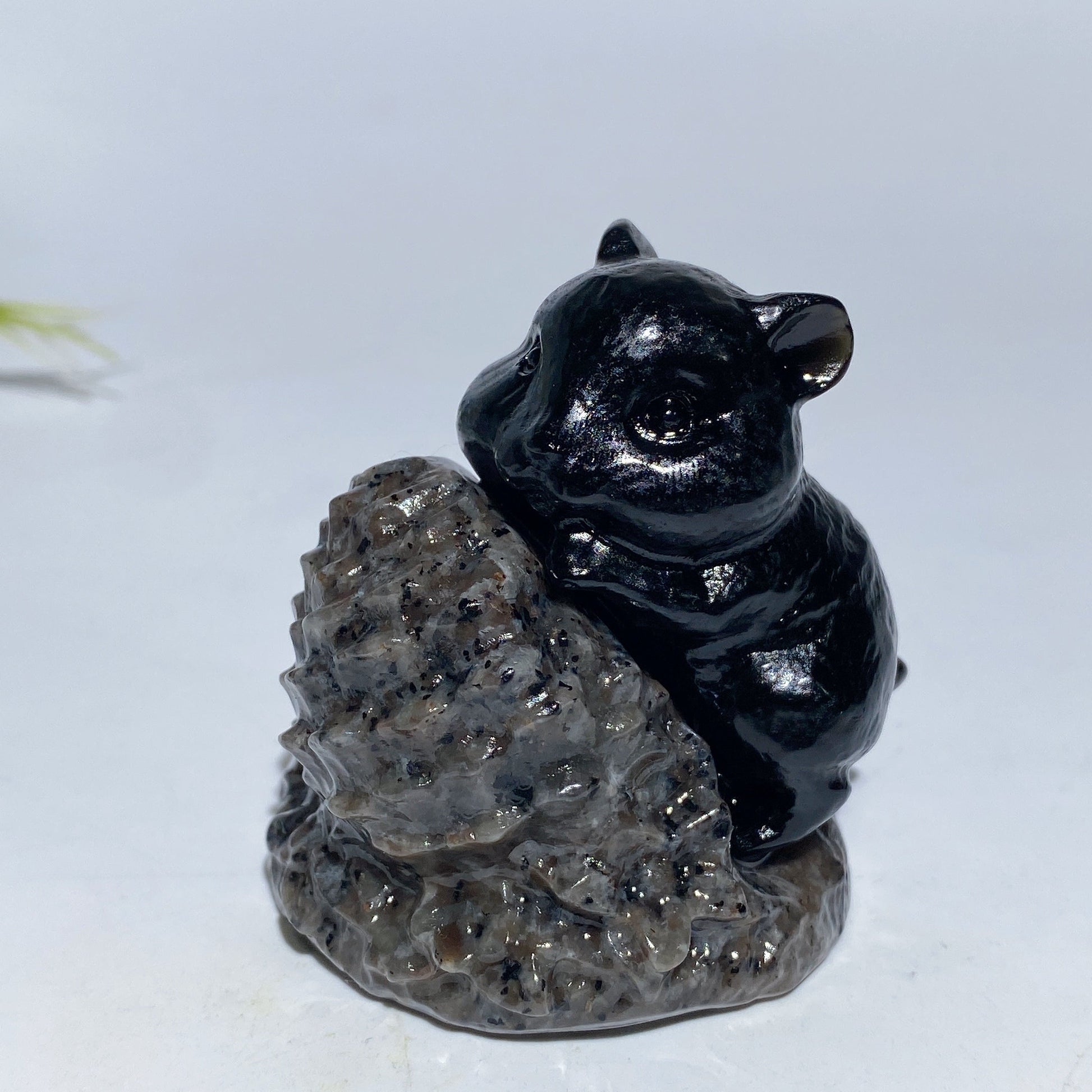 2.2" Obsidian White Jade Mouse with Base Carving Crystal Healing Bulk Wholesale