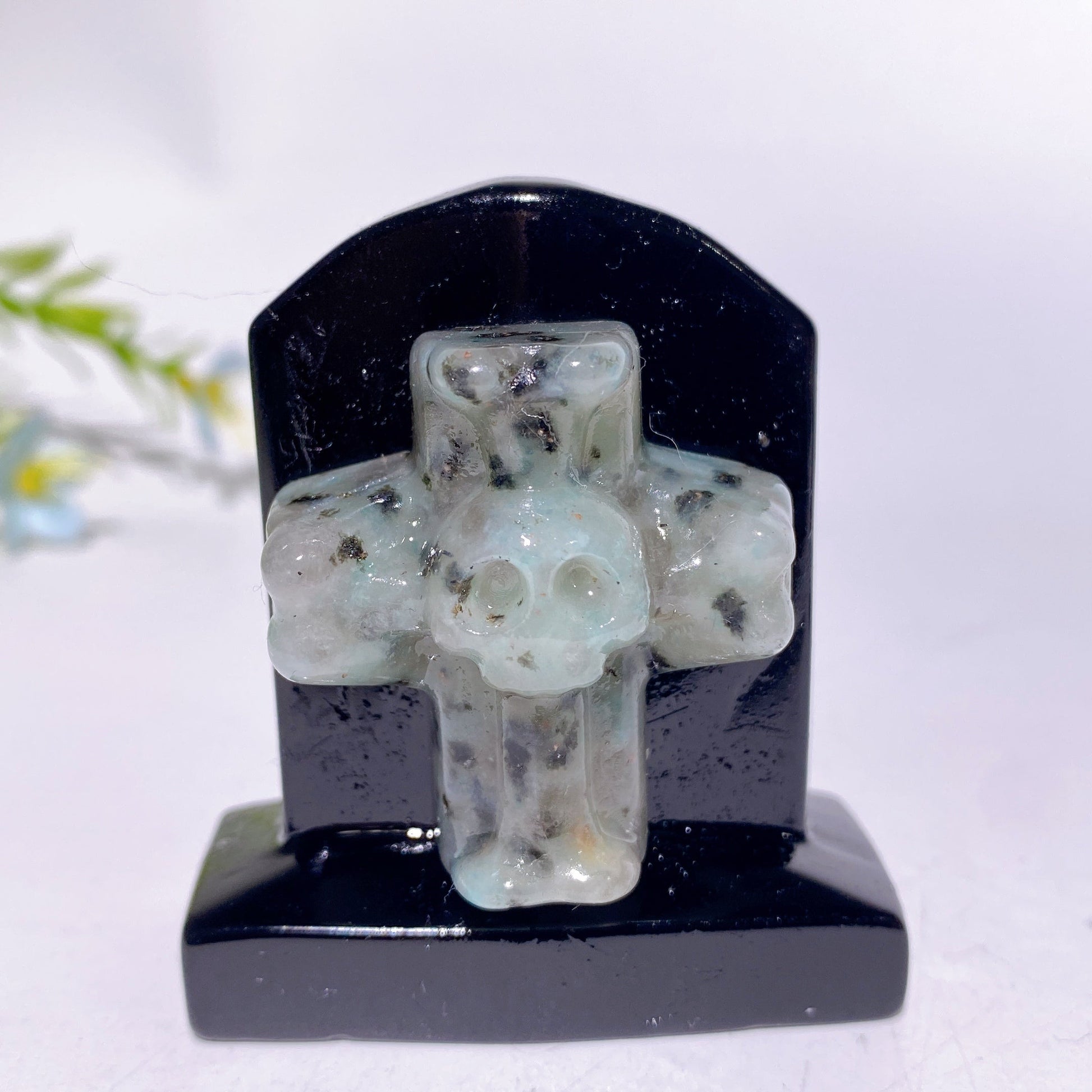 2.3" Black Obsidian Tombstone with Cross Skull Decor Carving Crystal Healing Bulk Wholesale