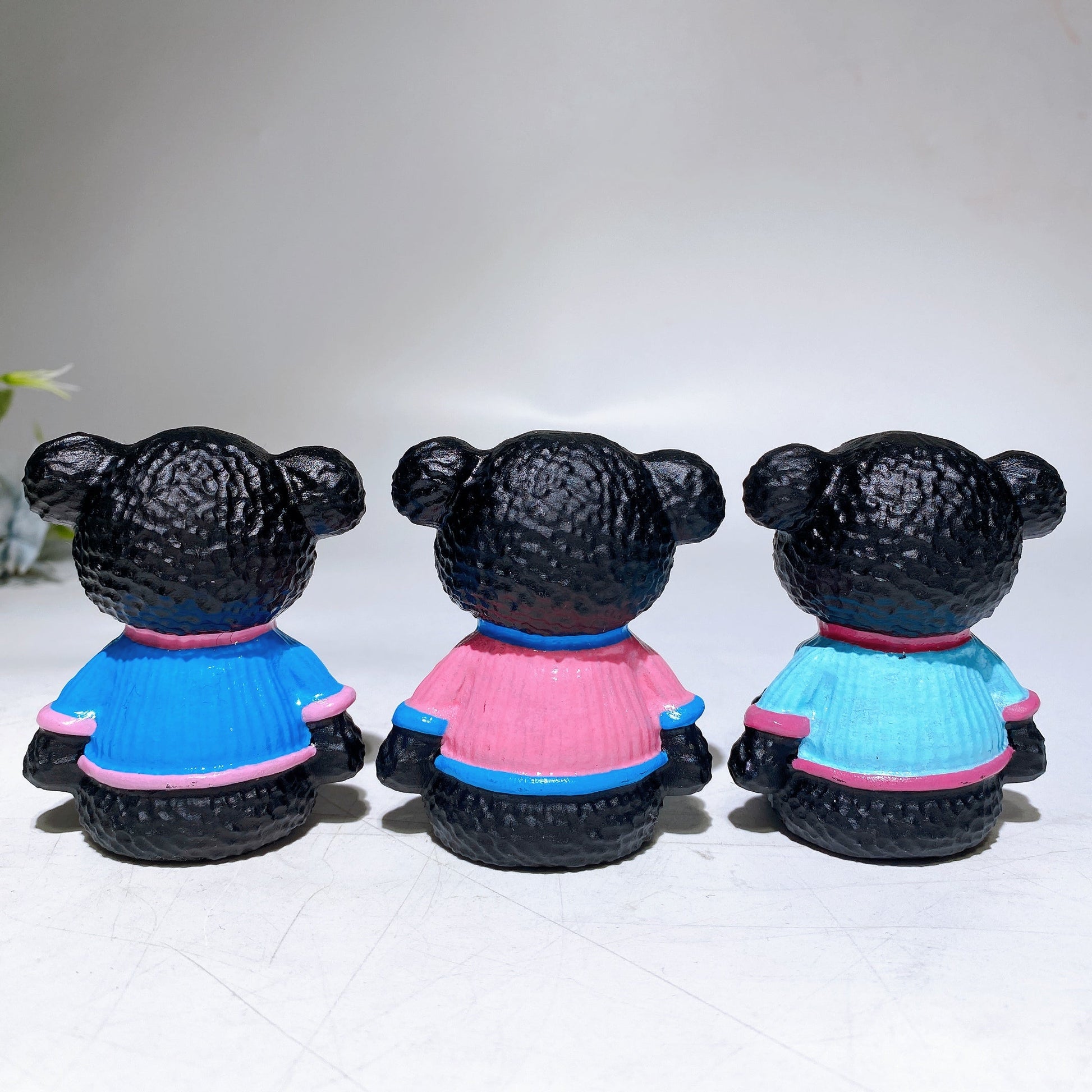 2.7" Black Obsidian Bear Carving with Painting Crystal Healing Bulk Wholesale