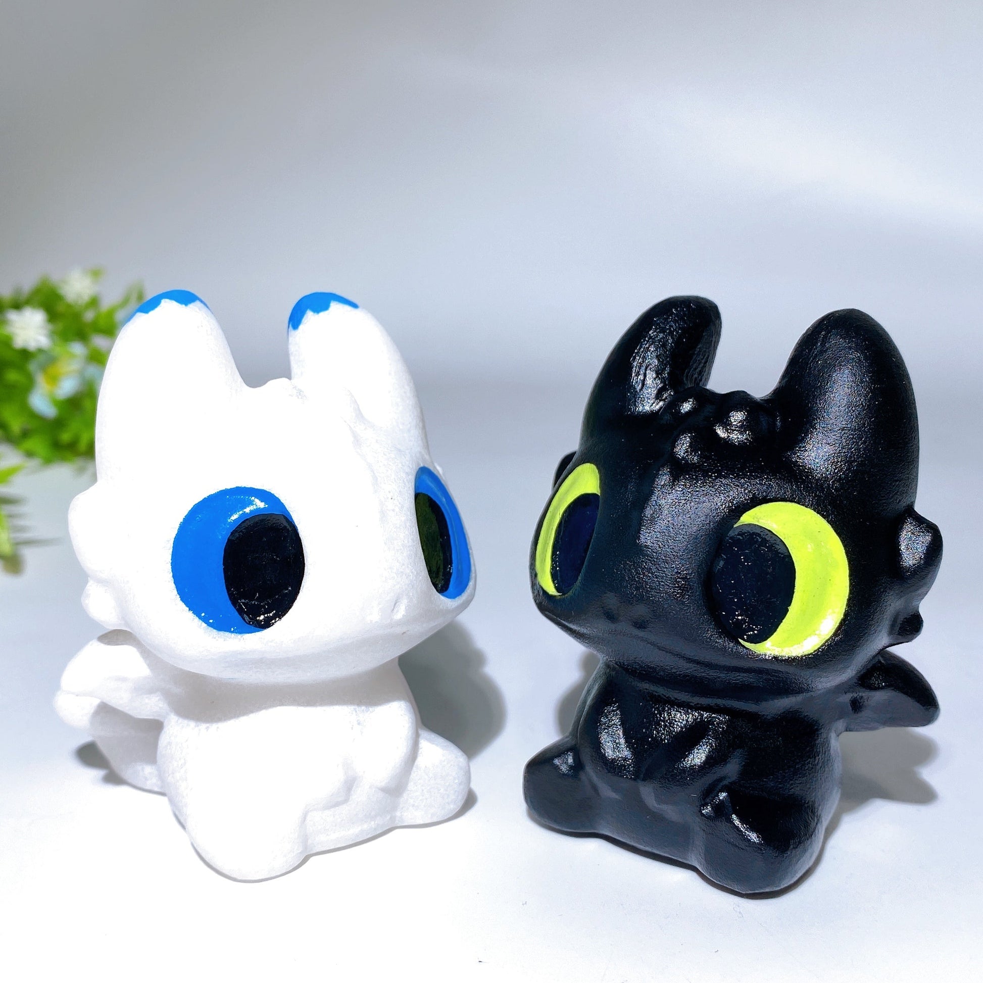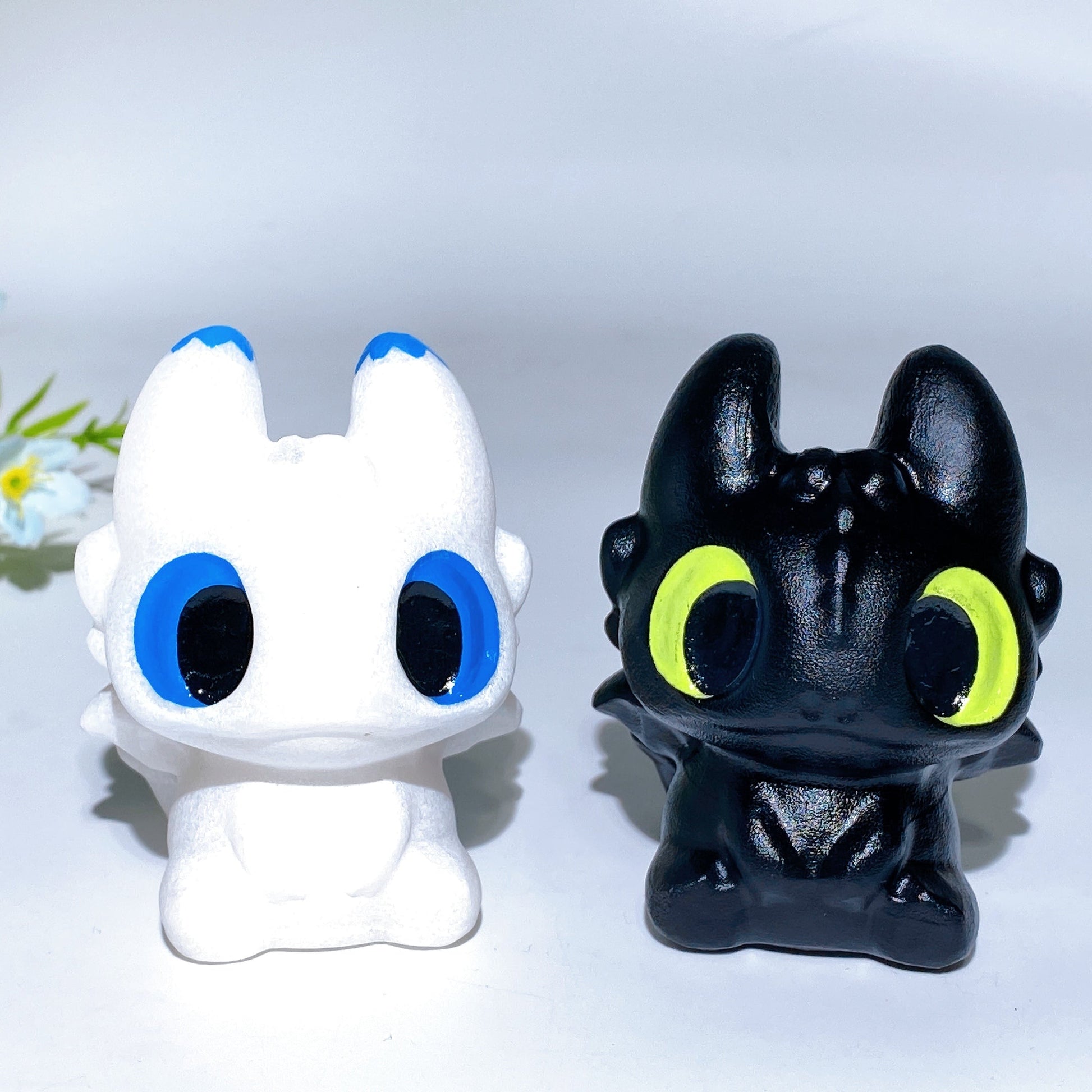 2.8" White Jade Black Obsidian Toothless Carving Crystal Healing Bulk Wholesale