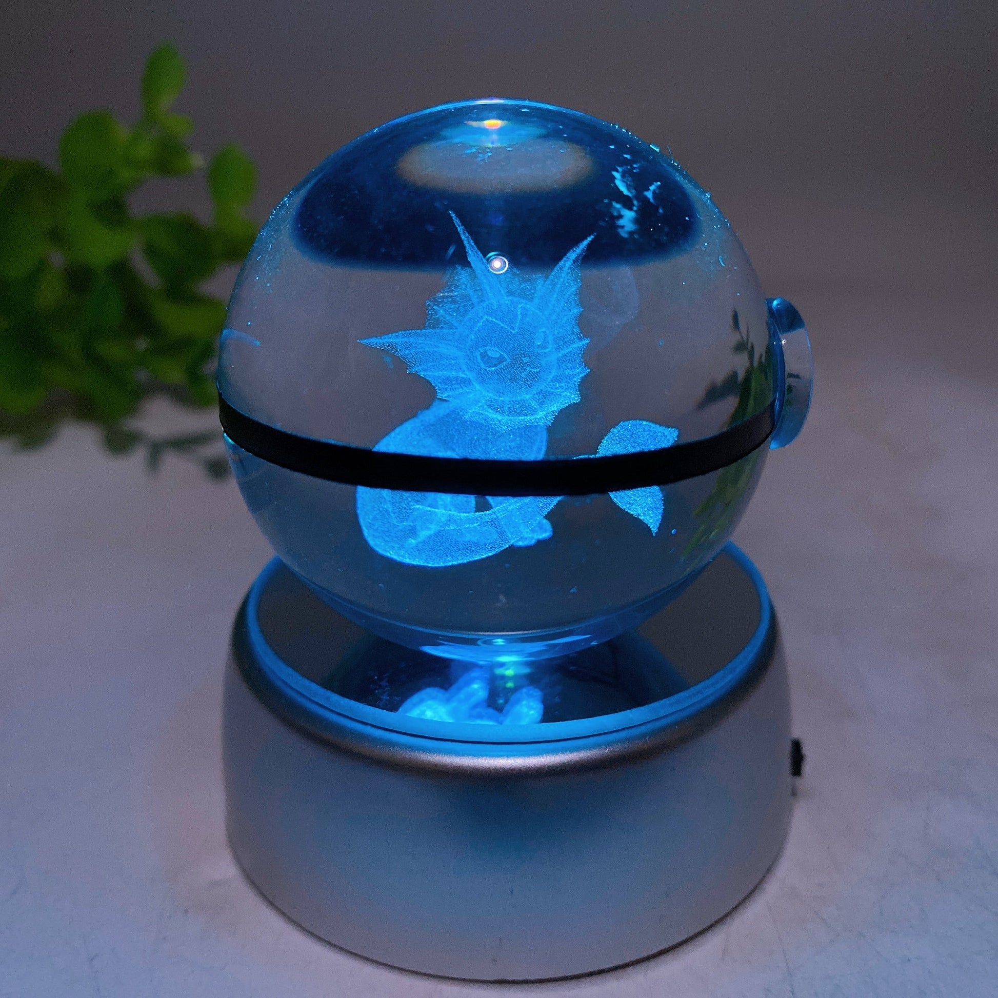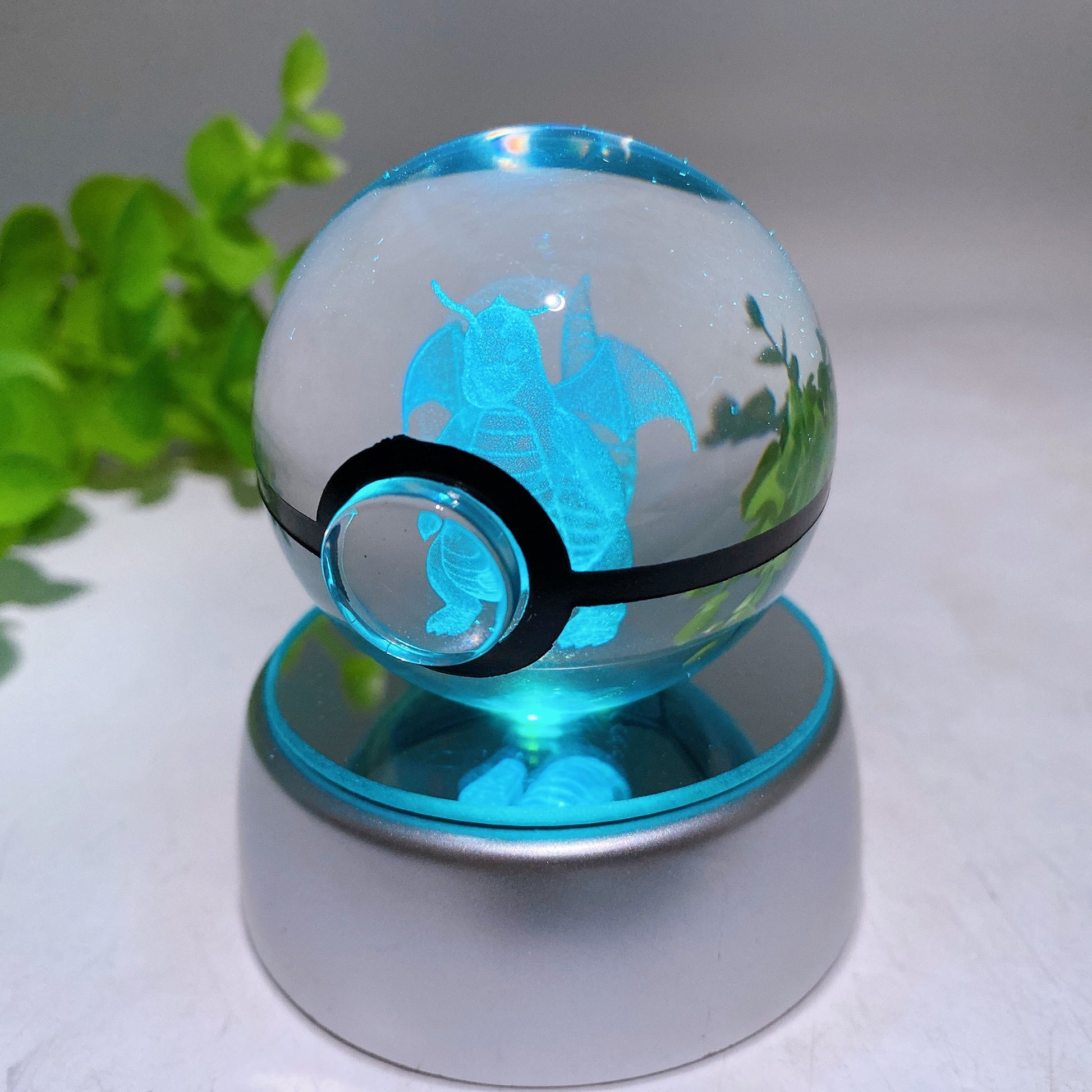 3D Inner Carving Crystal Pokemon Glass Sphere with Colorful Lamp Stand Crystal Healing Bulk Wholesale