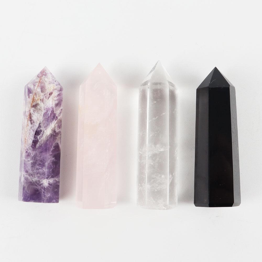 4pcs Amethyst Rose Quartz Rock Quartz Black Obsidian Natural Crystal Points Wands for Healing Wholesale Crystals USA