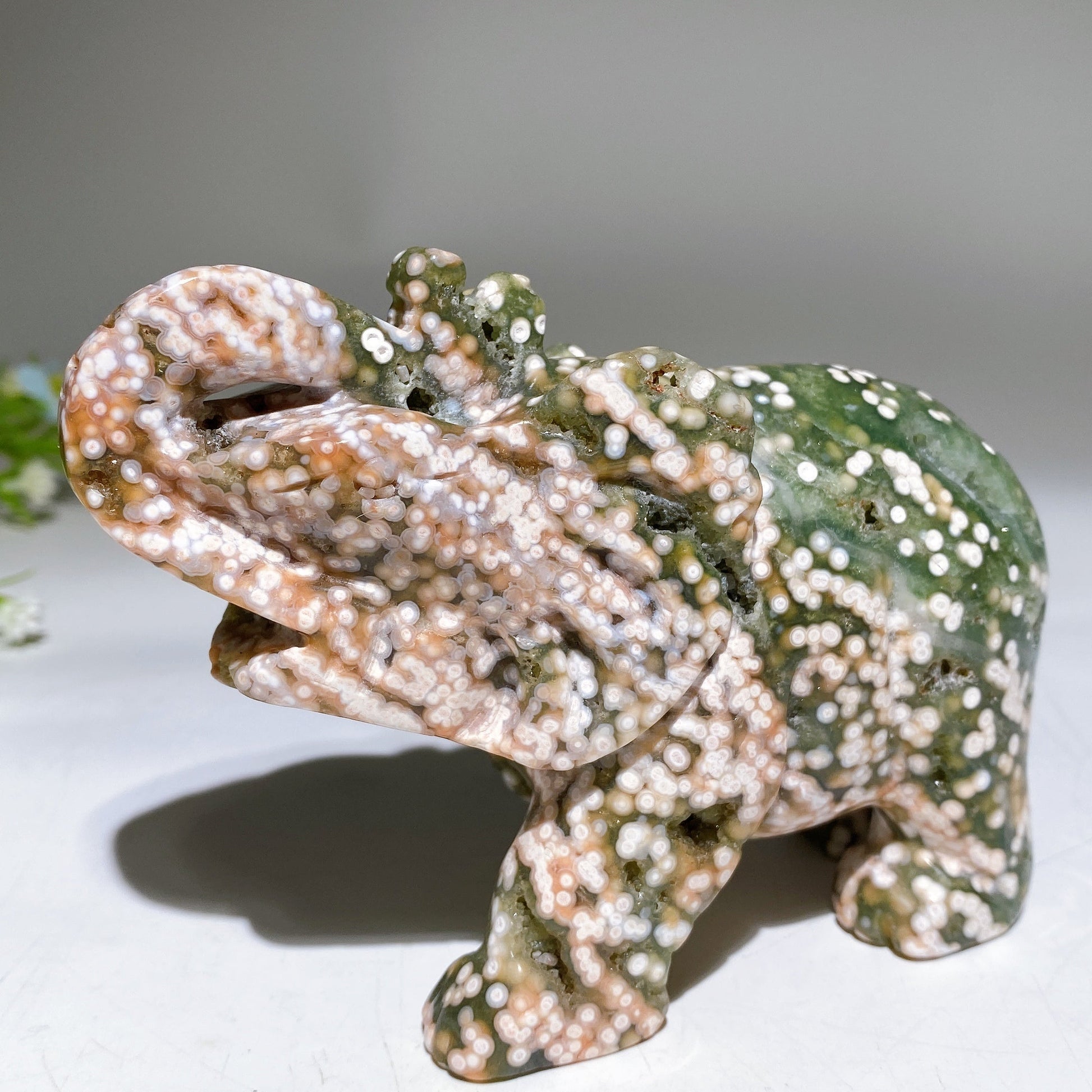 5.0" The 8th Druzy Ocean Jasper Elephant Carving Crystal Healing