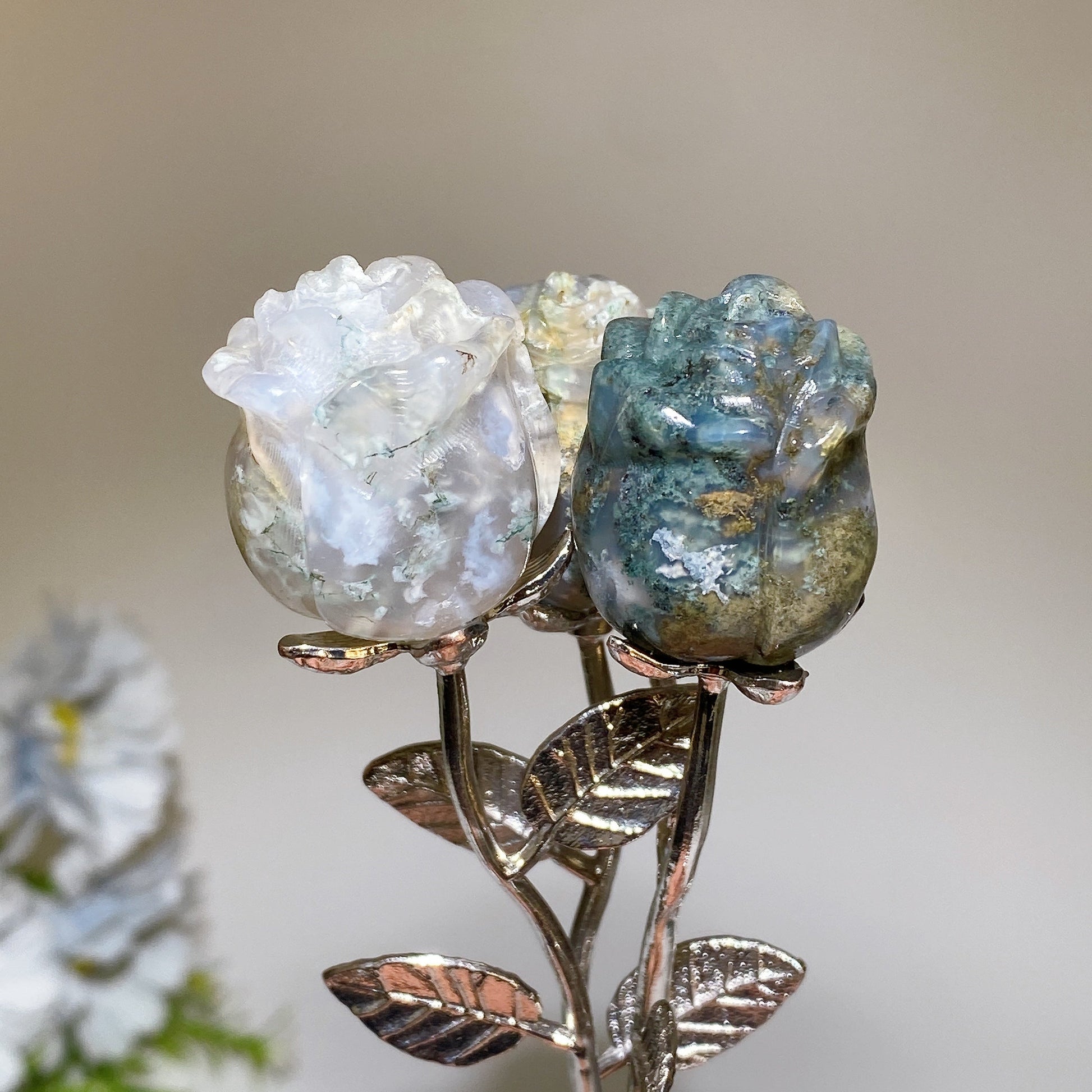 Crystal Flower Carving with Silver Color Metal Stem Crystal Healing Bulk Wholesale
