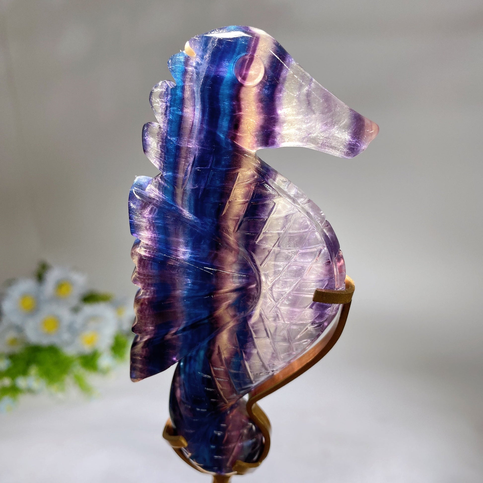 Rainbow Fluorite Seahorse Carving with Stand Crystal Healing Bulk Wholesale